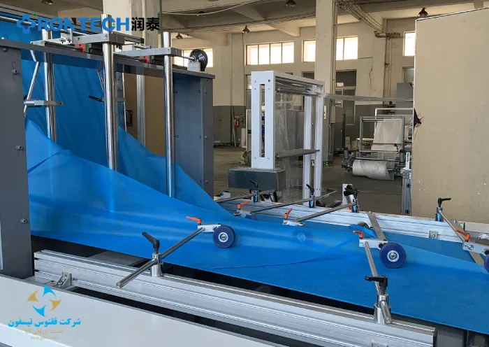 | تغذیه و بازکردن رول پارچه (RM Unwind) | سیستم تغذیه مستقل برای رول اسپانباند یا لمینیت با تنظیم تنش خودکار. |